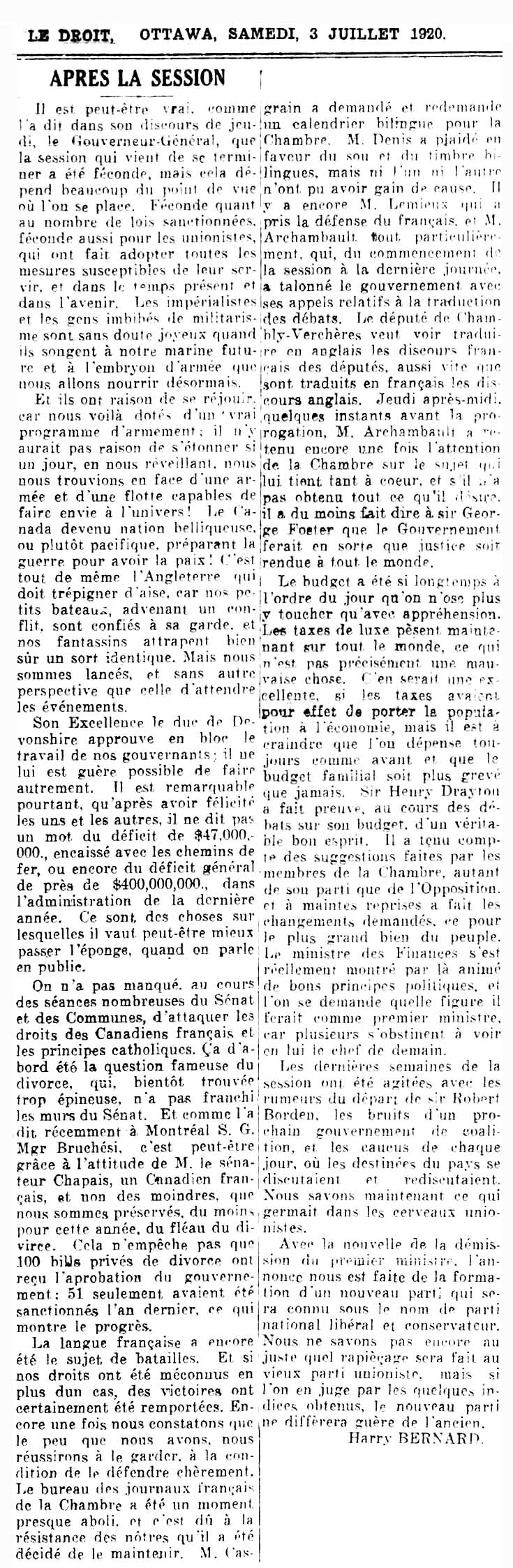 Les éditoriaux signés Harry Bernard au Courrier de Saint-Hyacinthe: un long panégyrique à la gloire de l'Union nationale!